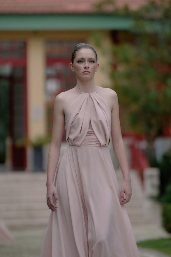 Mistal é a escolha perfeita para quem procura uma peça que combine sofisticação e subtileza. O detalhe de abertura na zona do peito, discreto mas sedutor, acrescenta um toque de sensualidade, enquanto a multiplicidade de drapeados na zona do peito valoriza ainda mais a forma e o movimento da mesma.